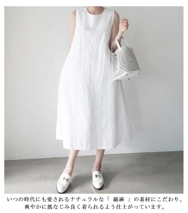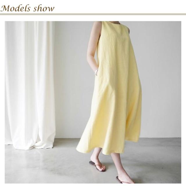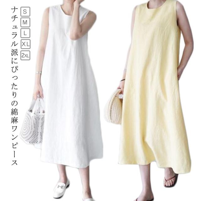 綿麻ワンピース ノースリーブ 夏 レディース ワンピース ロング マキシ丈 リネンワンピース マキシワンピース ロングワンピース 無地 薄手 体型カバー 着?せ 春夏 ワンピ ラウンドネック シンプル ナチュラル 大きサイズ ゆったり プレゼント ギフト 送料無料