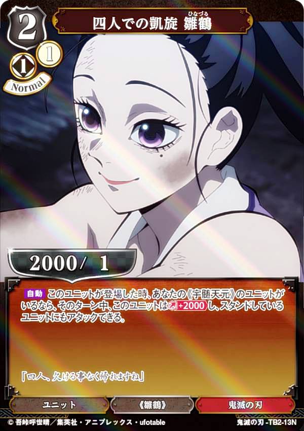 【パラレル】ビルディバイドTCG 鬼滅の刃-TB2-13N 四人での凱旋 雛鶴 (N ノーマル) タイアップブースター 鬼滅の刃 Vol.2