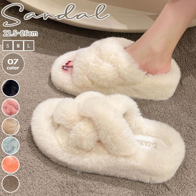 ◎いつで触れってたい、ふわふわ、もこもこファーサンダル。