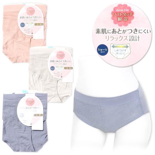 【送料無料】婦人 レディース リラックス設計 ショーツ ゆったり あとがつきにくい 綿混 ストレッチ 下着 yg-1924【メール便対応】
