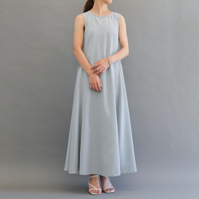 1枚でコーデがきまる、フレアマキシノースリーブワンピース