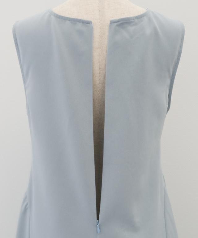 上半身は適度にフィット、腰から下にはぜいたくな切り替えを入れて思いっきりボリューミーなシルエットに。