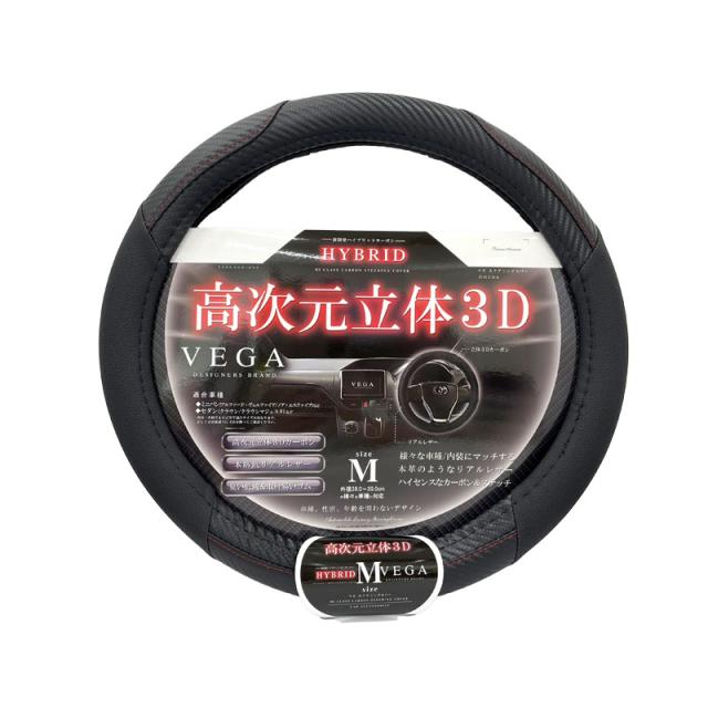 PROUD&DIONE ハンドルカバー ベガカーボン Mサイズ 38.0〜39.0cm レッド 赤 車内ドレスアップ 3Dカーボン柄 DH-064