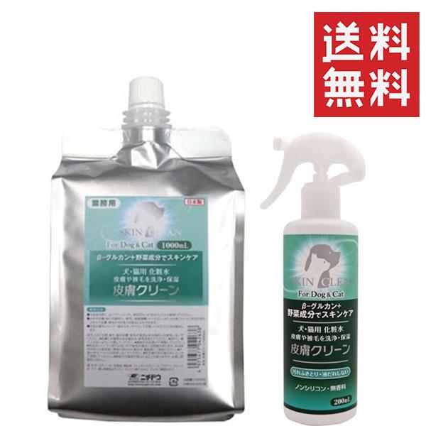 ニチドウ 皮膚クリーン 200mL+ニチドウ 皮膚クリーン 1000ml (1L) 業務用 セット まとめ買い 犬・猫用化粧水 スキンケア ノンシリコン 無香料