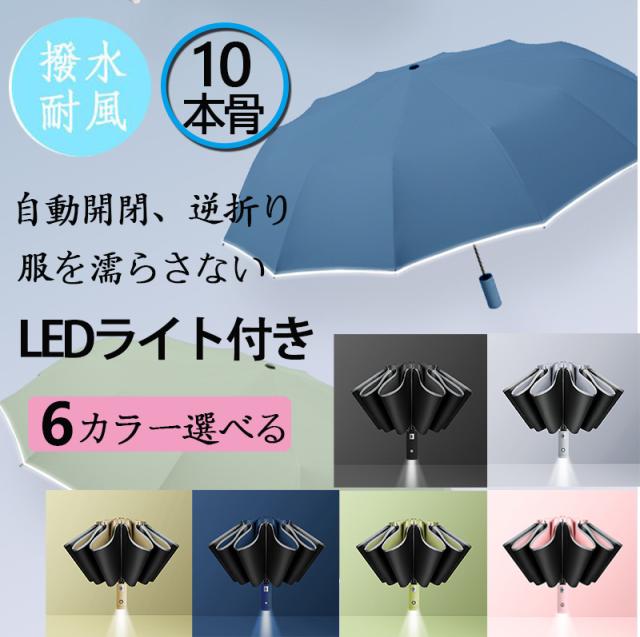 折りたたみ傘 自動開閉10本骨 雨傘 軽量 バンブーハンドル晴雨兼用 超撥水 日傘 ジャンプ傘 かさワンタッチ 耐風傘 UVカット 梅雨 LEDライト付きzk1020