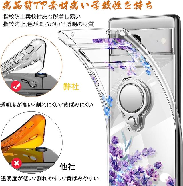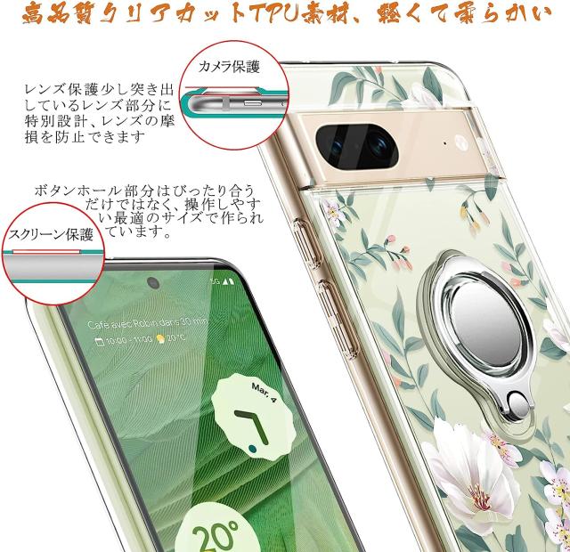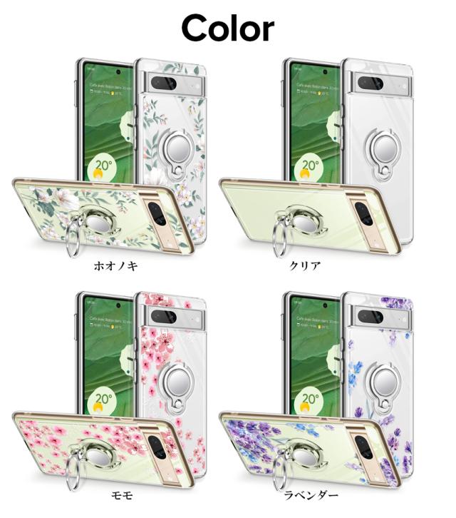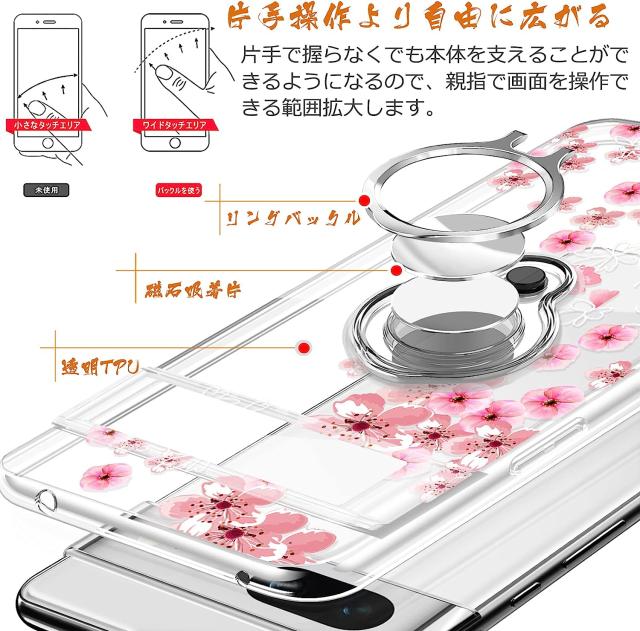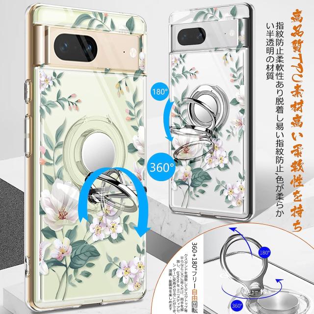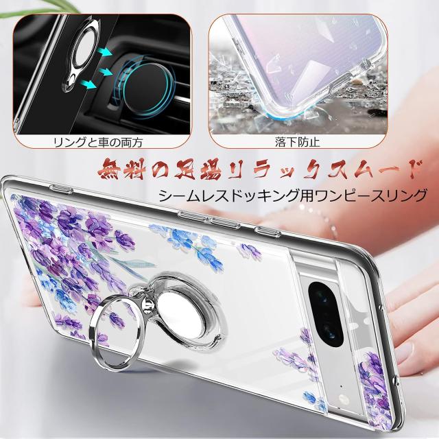 Pixel7 ケース 耐衝撃 リング付き 花柄 背面クリア Pixel7 Pro ケース ピクセル7 プロ カバー ストラップホール付き カメラ保護 傷つけ防止 docomo Softbank 2022 スマートフォン スタンド機能 スマホケース スマホカバー simフリー