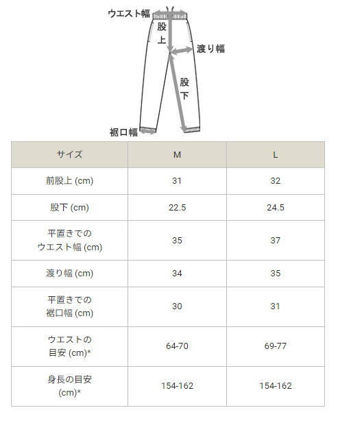 サイズ:身長 / ウエスト / 前股上 / 股下