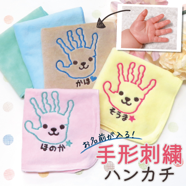 ハンカチ ハンドタオル 手形アート 子供の手形 子どもの手形 赤ちゃん手形 メモリアル 記念品 手形・足形 キッズ ベビー 出産祝い 刺繍