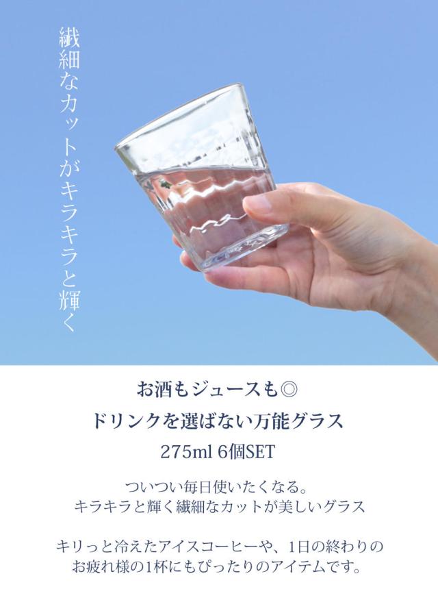 DURALEX デュラレックス プリズム コップ 275ml 6個セット ( PRISME 食洗機対応 電子レンジ対応 食器 グラス ガラス 強化ガラス ガラス製 耐熱 アイスコーヒー ホット ガラスコップ 丈夫 シンプル クリア 透明 洋食器 おしゃれ )