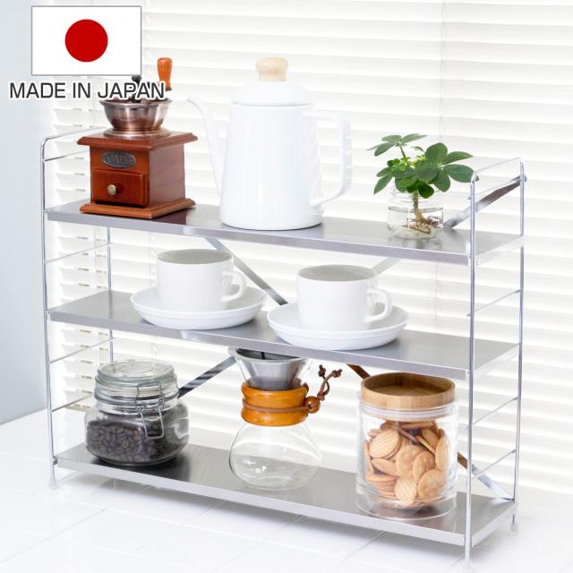 キッチンラック ステンレス棚コンロサイド収納 3段 ( ステンレス 日本製 コンロラック 調味料ラック レンジラック コンロサイドラック コンロ奥ラック 家電ラック スパイスラック 調味料棚 すき間 コンロ ラック 収納 三段 )