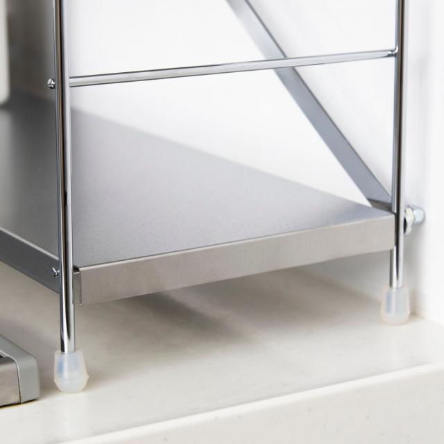 | 材質 | フレーム:スチール(クロムメッキ) 棚板:18-0ステンレス 脚ゴム:シリコーンゴム 袋ナット・六角ナット:スチール(ユニクロメッキ) |