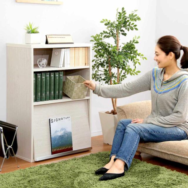 落ち着いた雰囲気を持つディスプレイラックです。 上段はオープン収納スペース、下段は雑誌などを飾れるフラップ扉です。使い勝手が良く、用途に合わせて彩り豊かにお部屋を飾ることができます。 日本の特殊グラビア印刷により天然木を忠実に再現したDSALSシリーズは、お部屋にあたたかな印象を与えてくれます。