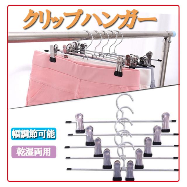 ハンガー 5本セット スカート すべらない 滑らない ステンレス クリップ 収納 ズボン用 ステンレスハンガー 強力クリップハンガー 衣類ハンガー スラックス ボトムハンガー パンツ タオル 洗濯バサミ ピンチ 引っ越し 省スペース ラック