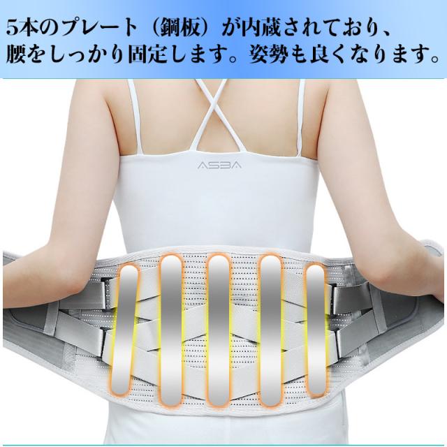 ・5本のプレート(鋼板)が内蔵されており、腰をしっかり固定します。姿勢も良くなります。