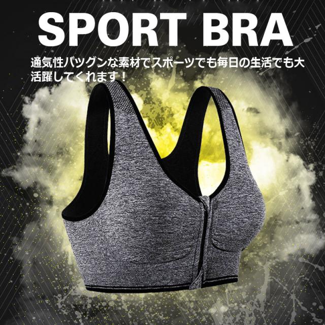 スポーツブラ ファスナー付き 前開き ブラトップ ノンワイヤ スポーツインナー ヨガウェア ジム ランニング ネコポス送料無料80N046