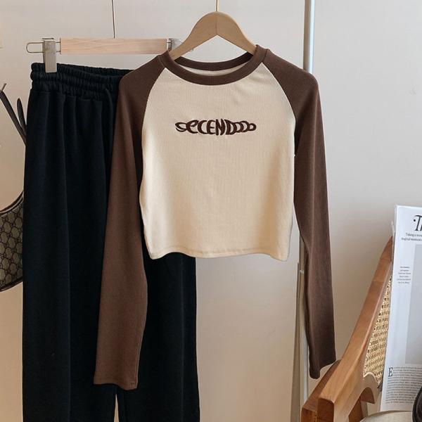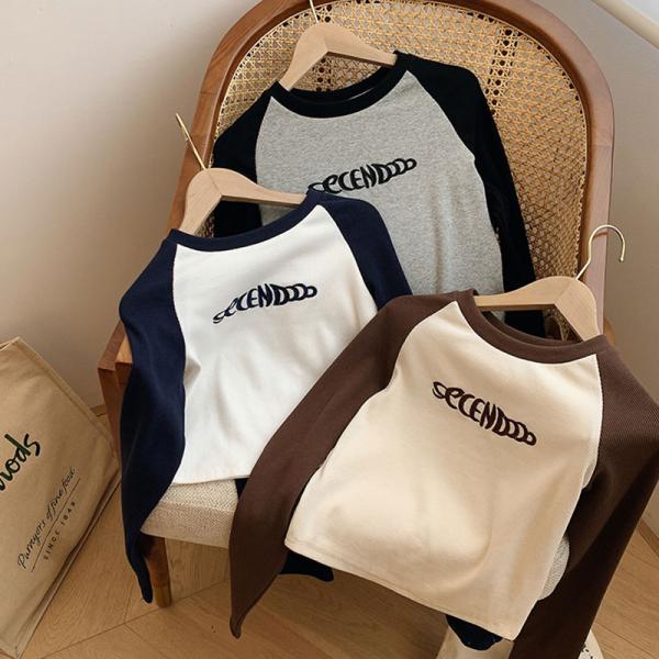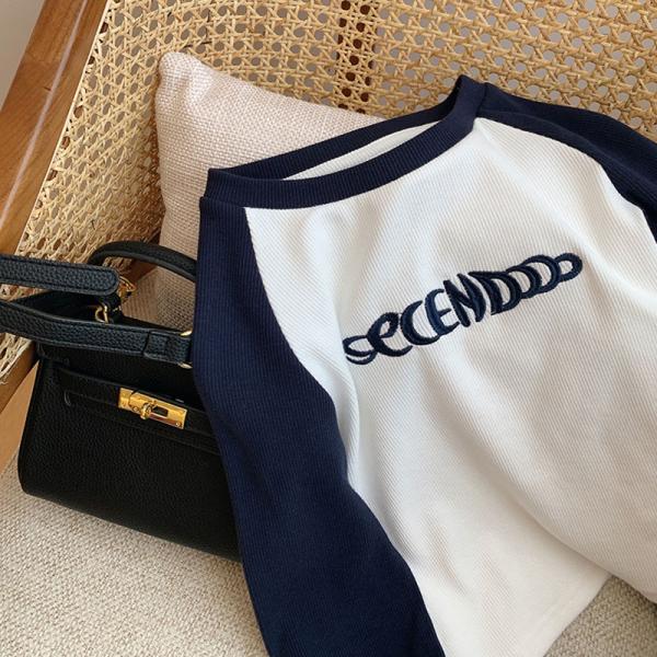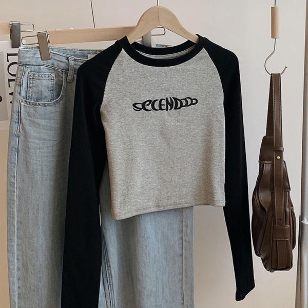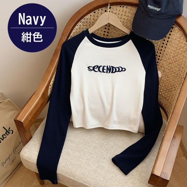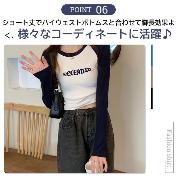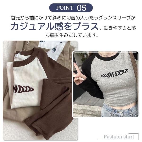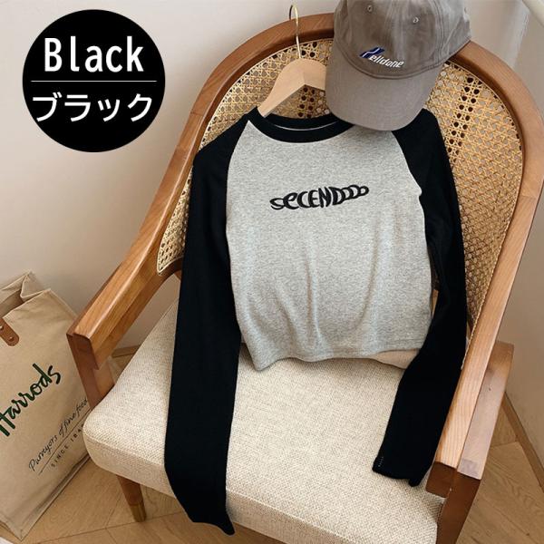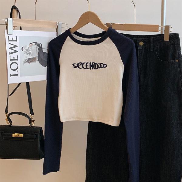 ラグランスリープ ショート丈トップス プルオーバー 配色 ショート丈 バイカラー インナー 長袖 レディース