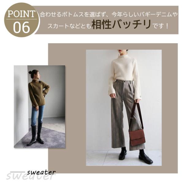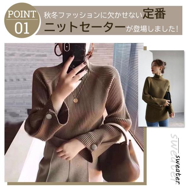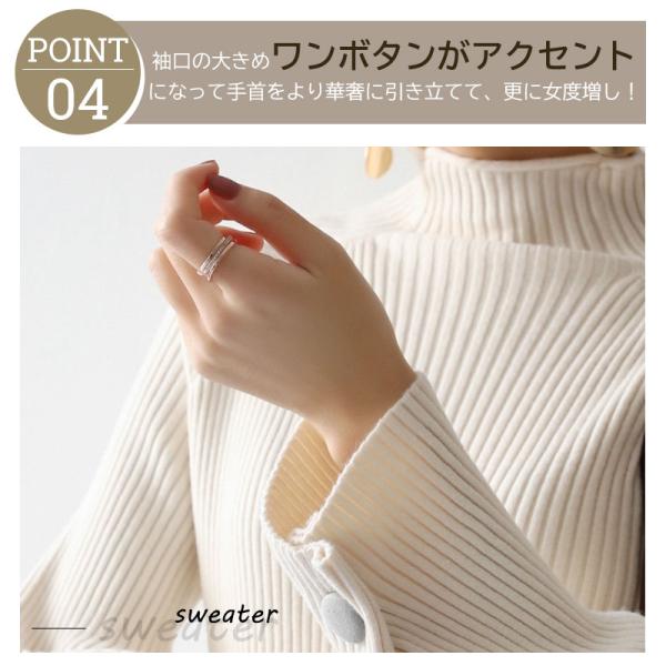 ラグランニット セーター 袖ボタン 体型カバー トップス ニット レディース 長袖 インナー ハイネック ボリューム袖 リブニット リブセーター 秋冬 無地 オフィス 通勤 通学