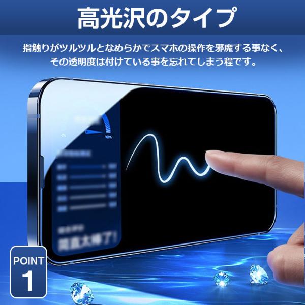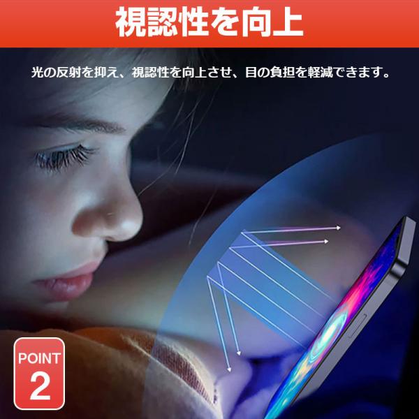 高光沢とアンチグレアの2タイプからご選択いただけます!吸着面に特殊加工が施されており、貼る際に気泡が入りにくく、入った場合でも時間の経過とともに気泡が分散され目立たなくなります。表面に指紋防止加工を施すことで指紋が目立ちにくくなり、ベタつきを軽減し、表面を綺麗に保つことができます。高光沢タイプは指触りがツルツルとなめらかでスマホの操作を邪魔する事なく、その透明度は付けている事を忘れてしまう程です。指紋付着を抑えながら、写真や動画を鮮やかに表現できます。アンチグレアタイプは光の反射を抑え、視認性を向上させ、目の負担を軽減できます。画面表示が見やすくなり、サラサラとした質感で、長時間の作業、ゲームなどには最適です。