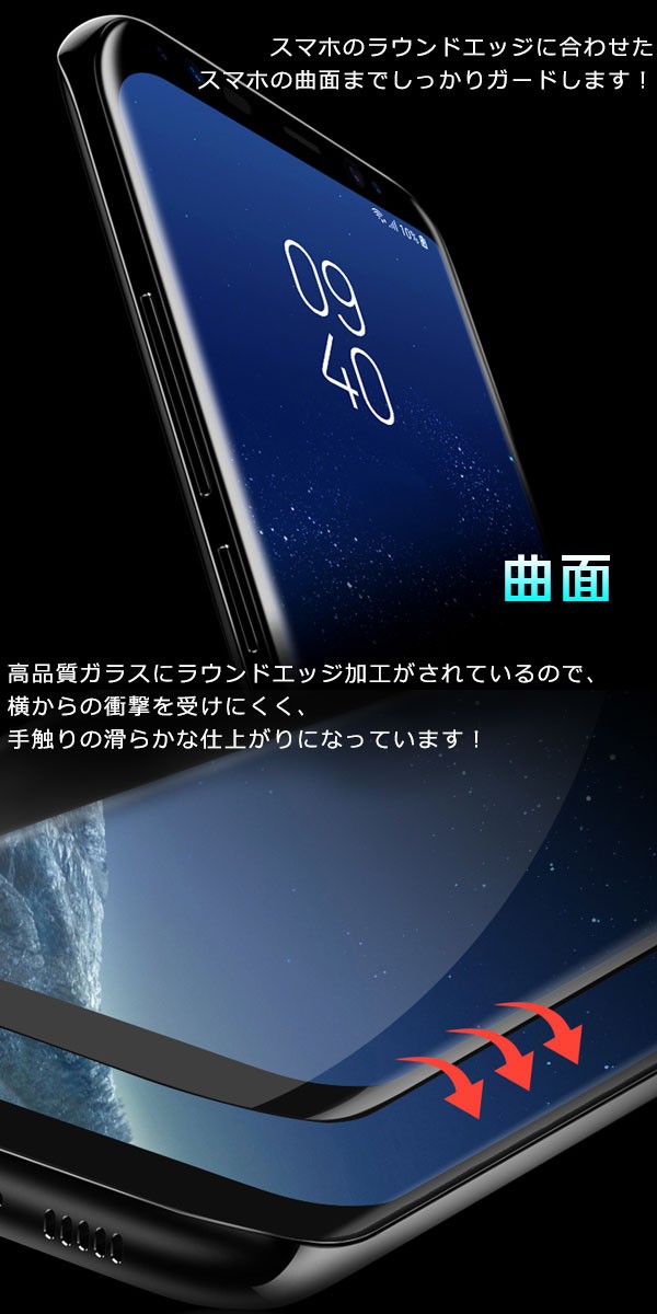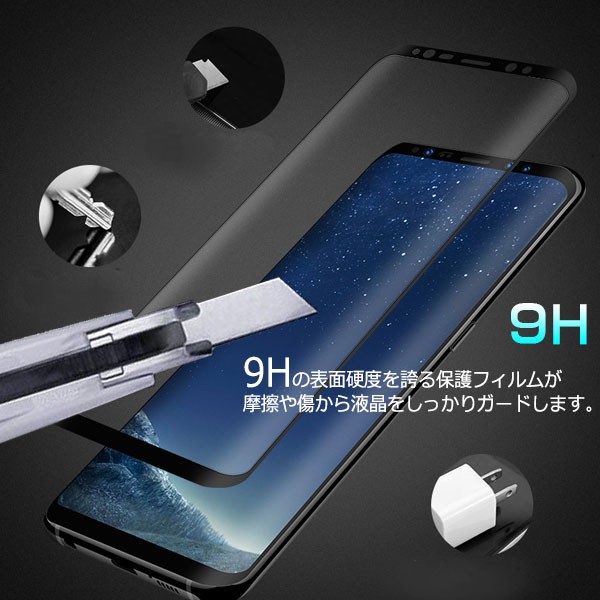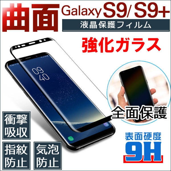 Samsung Galaxy S9 S9 Plus 強化ガラスフィルム ガラスシート 曲面 液晶保護フィルム 全面保護 ネコポス送料無料