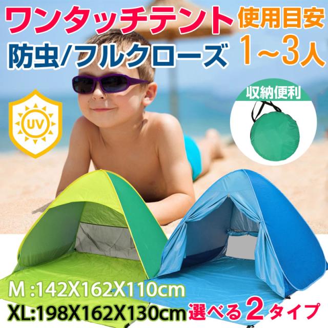 ワンタッチテント 簡単組み立て 収納 簡易テント 軽量 日よけ キャンプ ピクニック 運動会 海水浴 プール バーベキュー フェス ポップアップテント ビーチテント サンシェード 海 ビーチ 2人用キャンプテント UVカット 防虫 フルクローズ 使用目安1〜3人