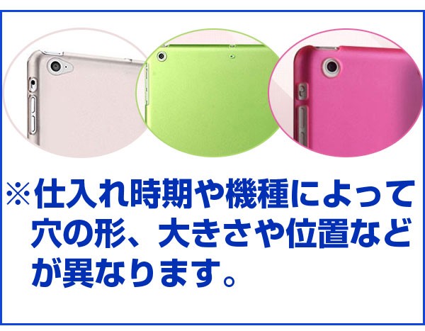 ※ 2017年モデル/2018年モデル iPad 9.7インチ用ケースの背面に開いている穴の仕様はメーカーより予告なく変更がある場合ございますので、若干の相違があった場合は現品を優先させていただきます。