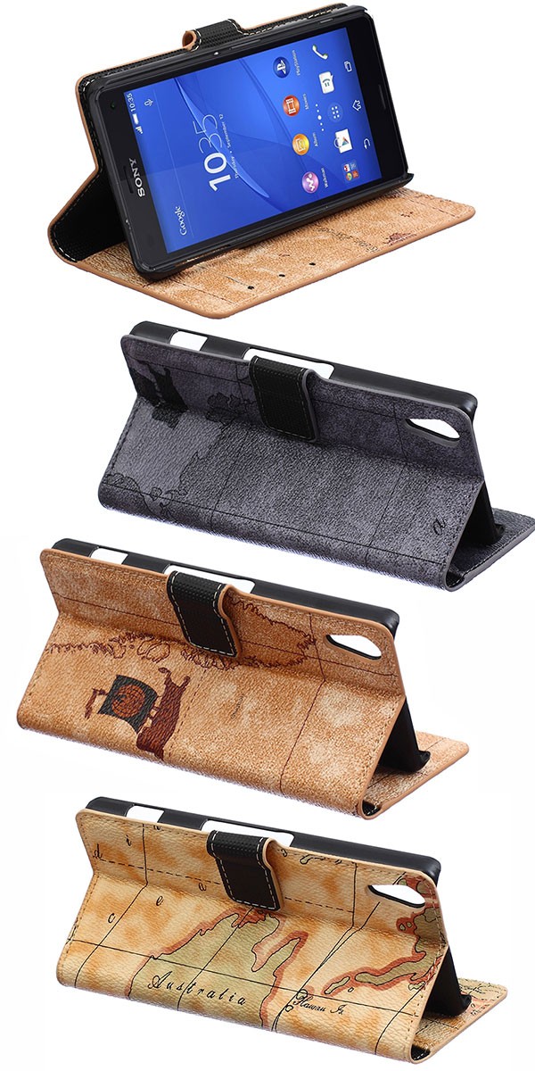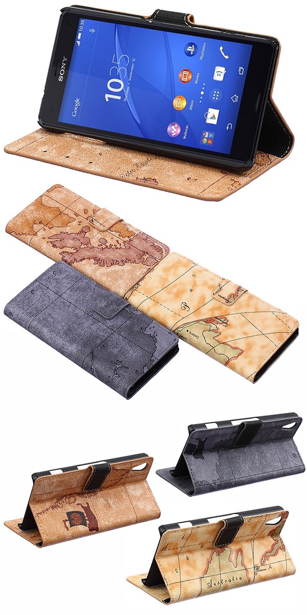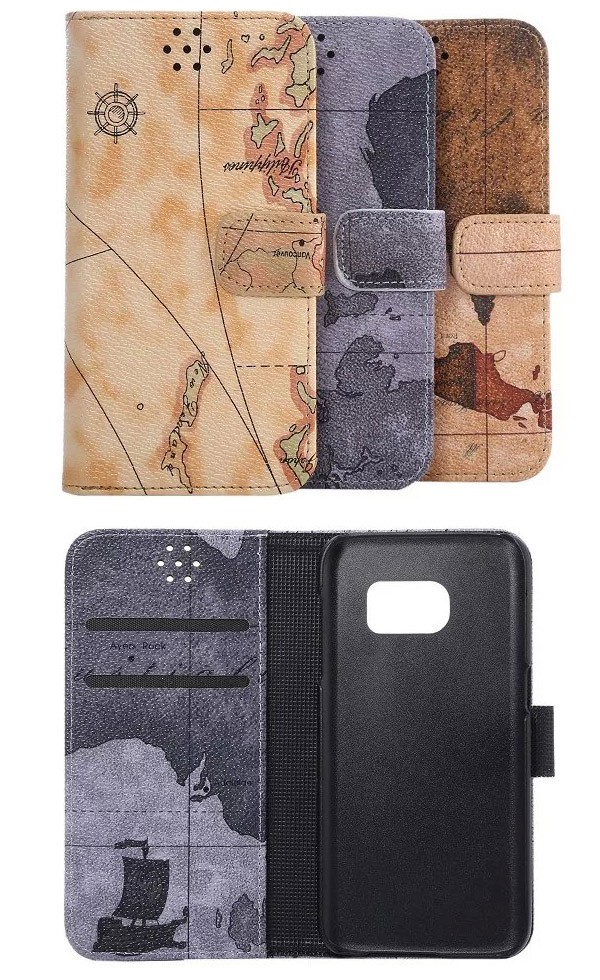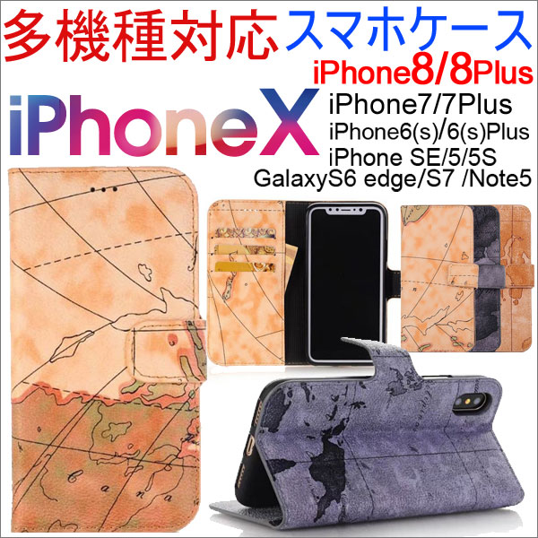 iPhone X iPhone6/6s/6plus/6sPlus/5/5s/5c iPhone SE Xperia Z4 Galaxy S6 edge Galaxy S7 Note5用のスタンド機能付き手帳型地図柄PUレザーケース!