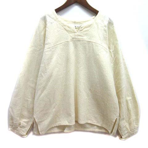 【中古】とわデザイン toi-design ギャザー キーネック ブラウス プルオーバー ウール アイボリー 0 日本製 レディース
