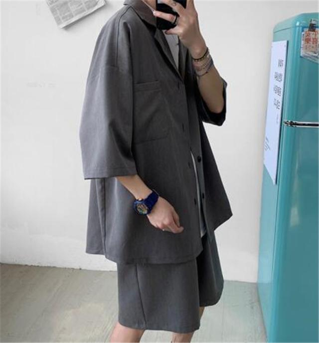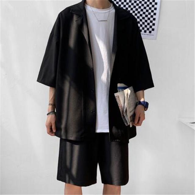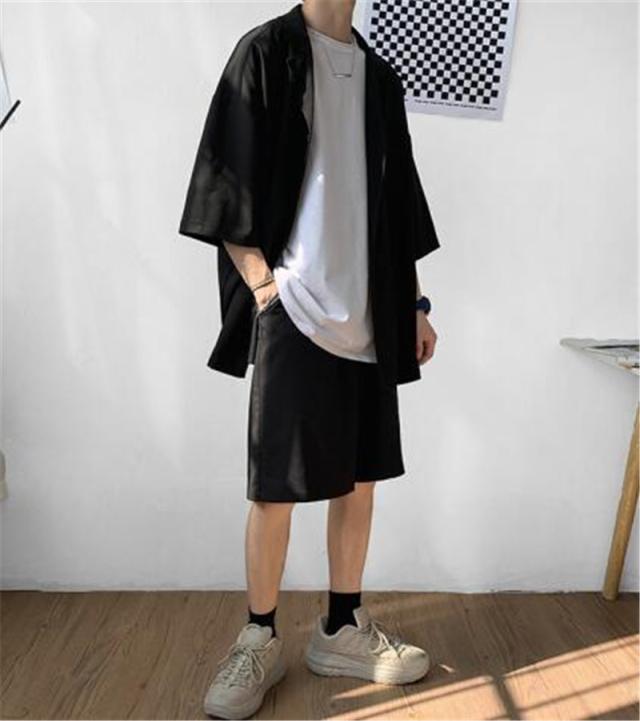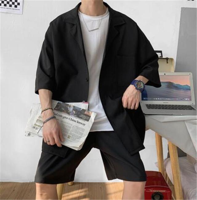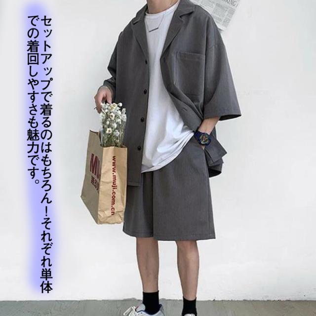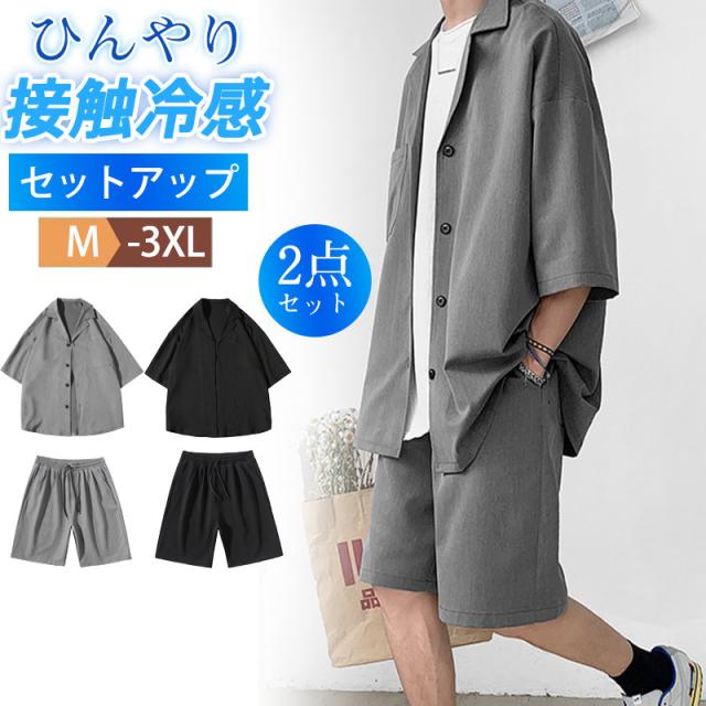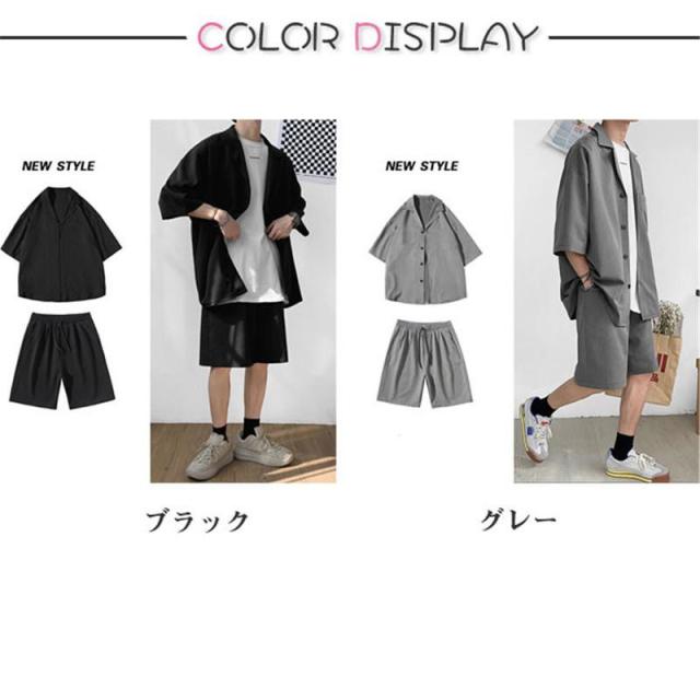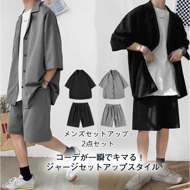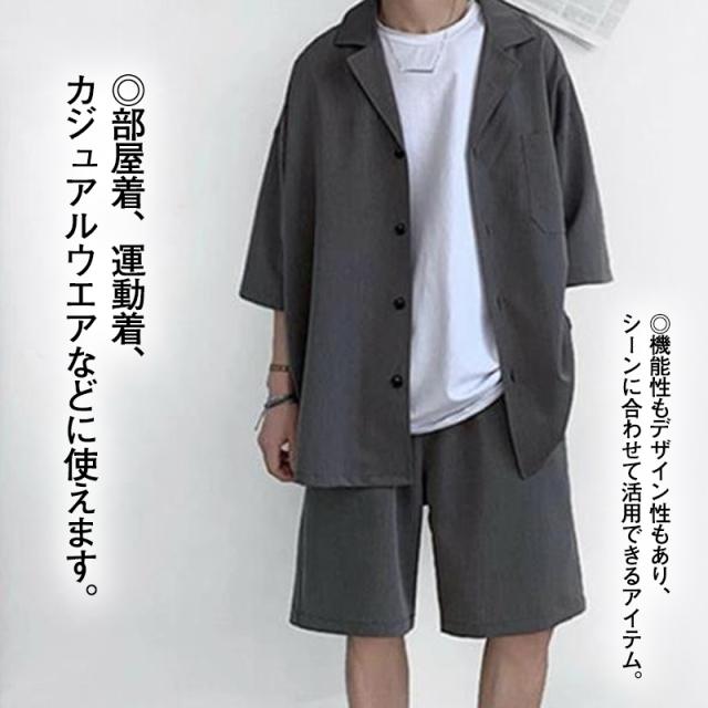 セットアップ メンズ ジャージ 上下 2点セット 開襟 シャツ ボタンダウン 短パン ゆったり 大きいサイズ 薄手 無地 涼しい