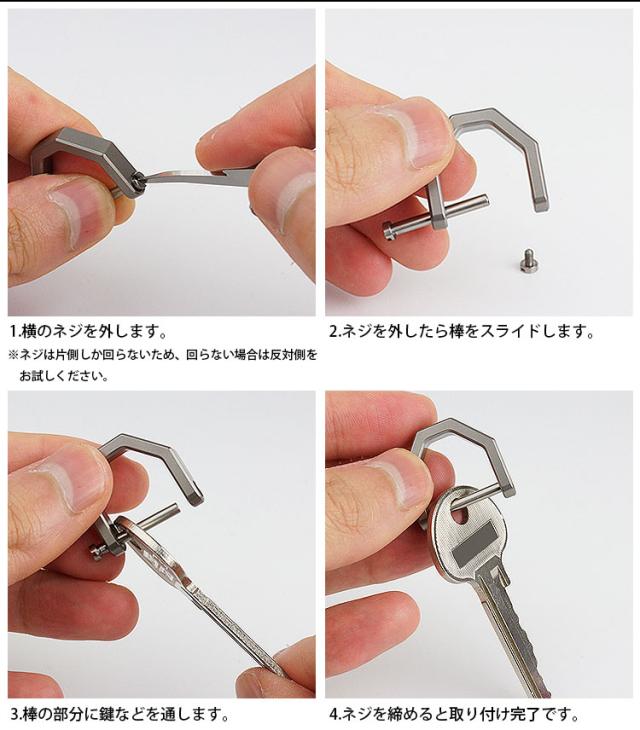 鍵を取り付ける棒の部分はネジ式になり、横のネジを外すことで簡単に鍵を取り付けることができます。