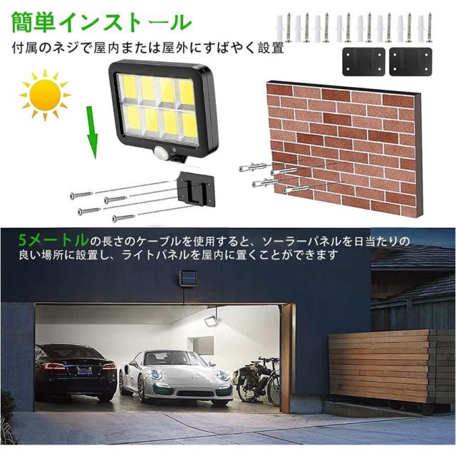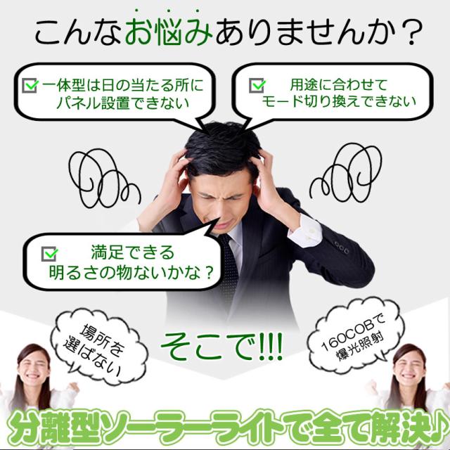 ソーラーライト 屋外 防水 センサーライト ガーデンライト ソーラーセンサーライト 分離型 分離 パネル 防犯ライト 防災ライト 人感センサーライト 160 COB LED LED3モード太陽光発電 360度角度自由調整 SHINSEN