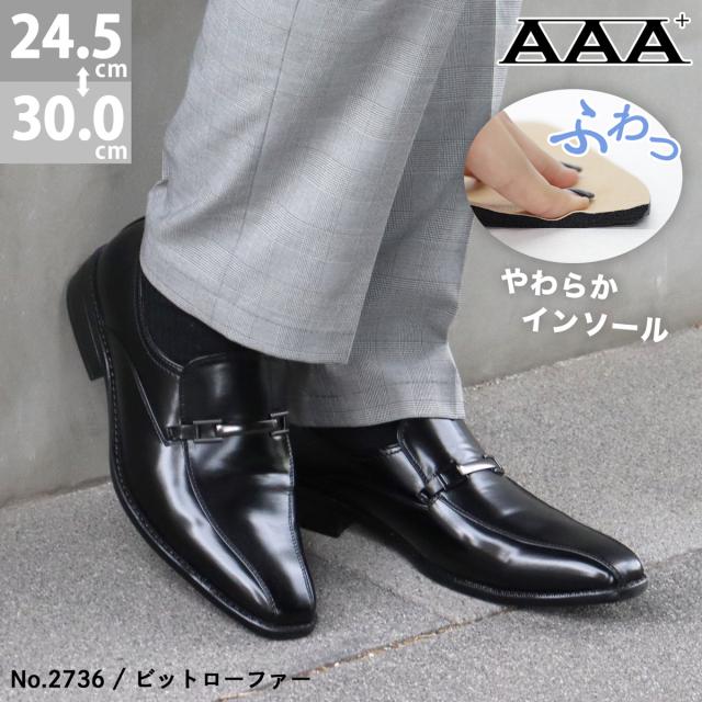 ビジネスシューズ メンズ 大きいサイズ ローファー ビット 革靴 No.2736 24.5-29cm 30cm 黒 AAA+ サンエープラス 273