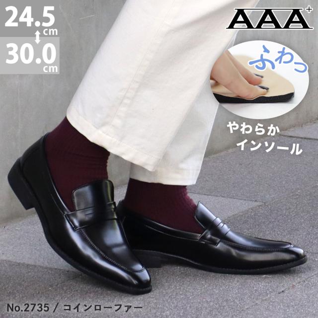 ビジネスシューズ メンズ ローファー コインローファー 大きいサイズ 革靴 No.2735 24.5-29cm 30cm 黒 AAA+ サンエープラス 273