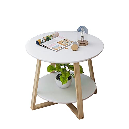 サイドテーブル ベッドサイドテーブル 丸型 直径40cm 高さ50cm 2段 天然木 小さい 白 ホワイト 寝室 テーブル ベッド横 ソファ おしゃれ 白 韓国 円形 北欧 かわいい 収納