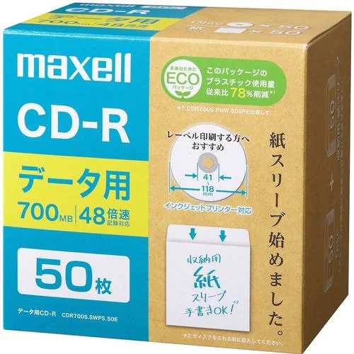 マクセル(maxell) CDR700S.SWPS.50E データ用CDR エコパッケージ 2-48倍 700MB 50枚