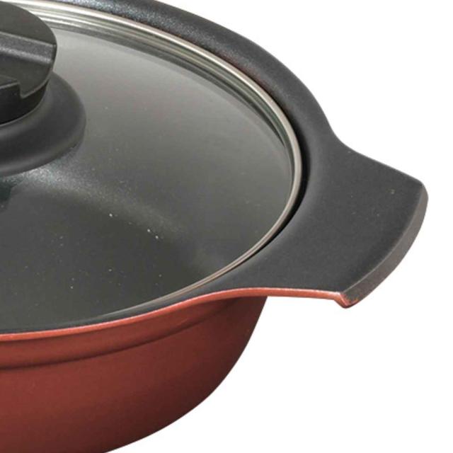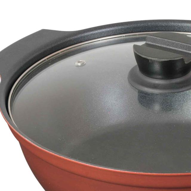 卓上鍋 28cm IH対応 ガラス蓋付き 旨味 ( ガス火対応 オール熱源対応 両手なべ 両手 鍋 なべ ガラス蓋 28センチ フッ素加工 アルミ製 フタ付き 季節鍋 寄せ鍋 3〜4人用 卓上なべ )