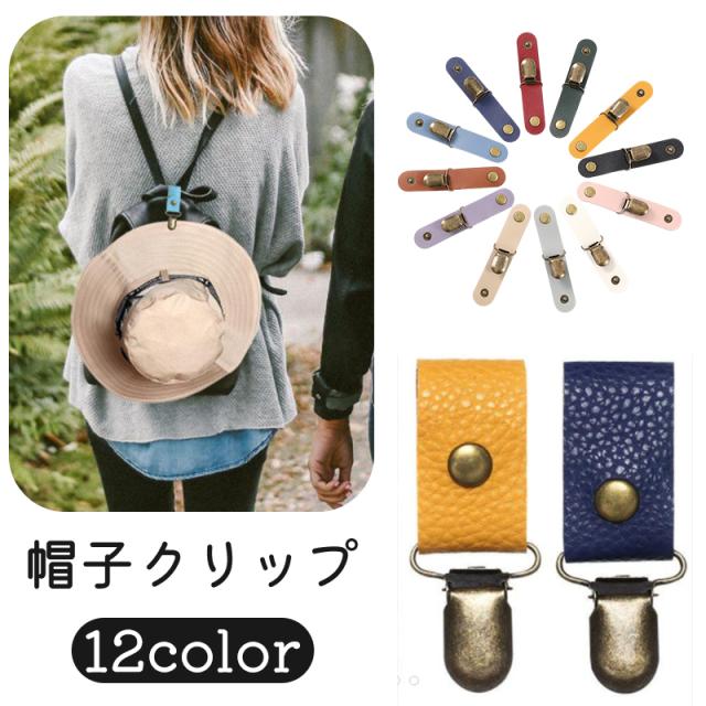 帽子クリップ ハットクリップ ぼうし 鞄 カバン バッグ 持ち運び フェイクレザー レザー調 紛失防止 吊り下げ ホルダー 外出