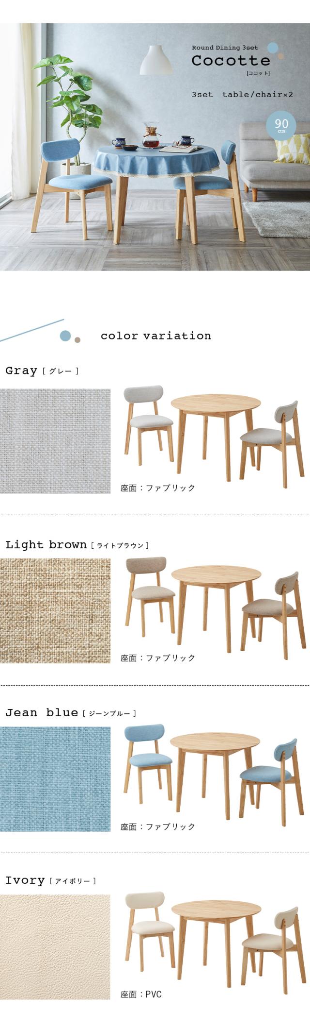 ダイニング3点セット 幅90cm Cocotte3(ココット3) 4色対応 円形ダイニングセット 円形ダイニングテーブル ダイニングテーブルセット ラウンドテーブル 円卓 ダイニングチェア ダイニングチェアー おしゃれ 木製