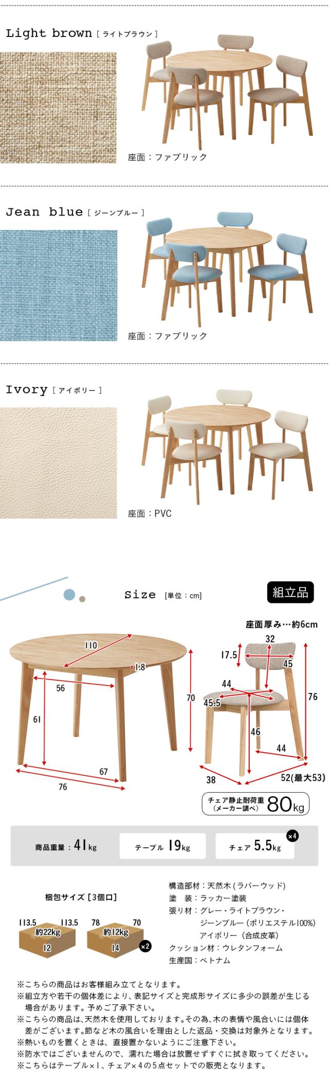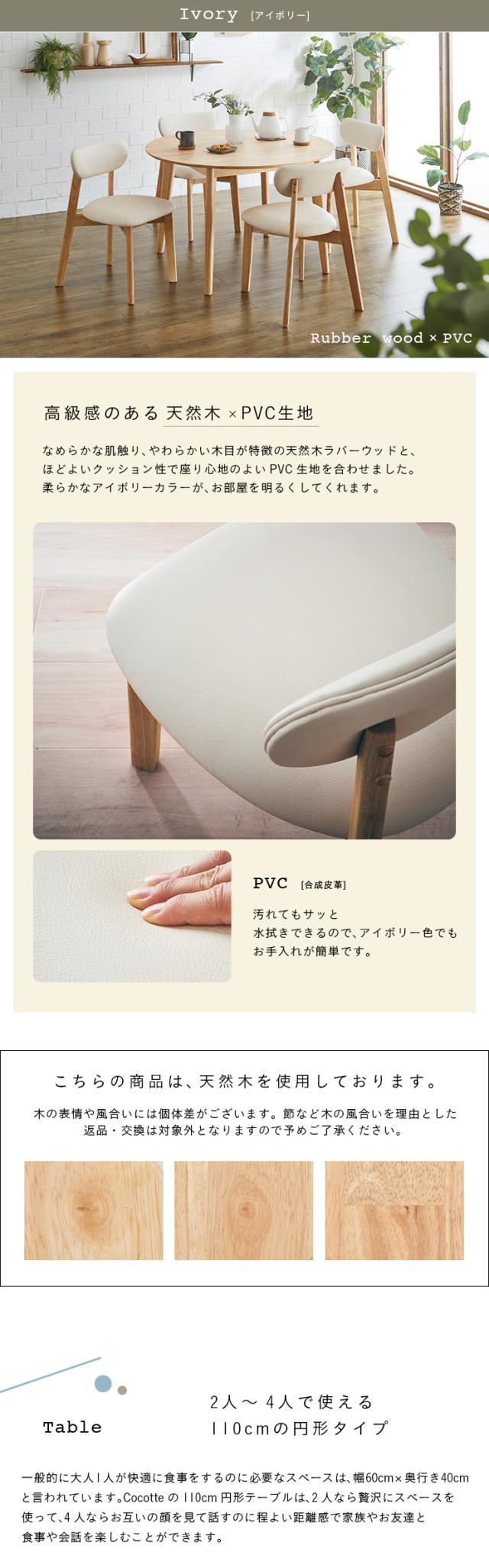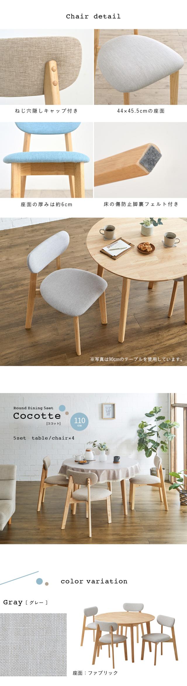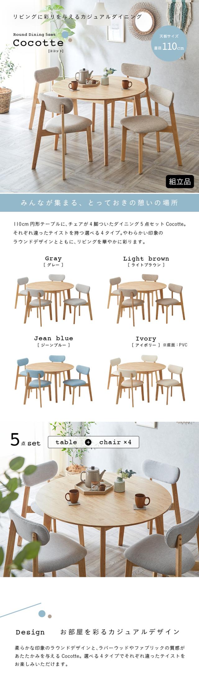 ダイニング5点セット 幅110cm Cocotte3(ココット3) 4色対応 円形ダイニングセット 円形ダイニングテーブル ダイニングテーブルセット ラウンドテーブル 円卓 ダイニングチェア ダイニングチェアー おしゃれ 木製