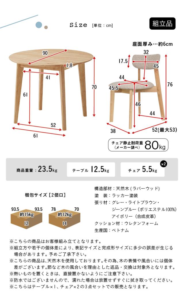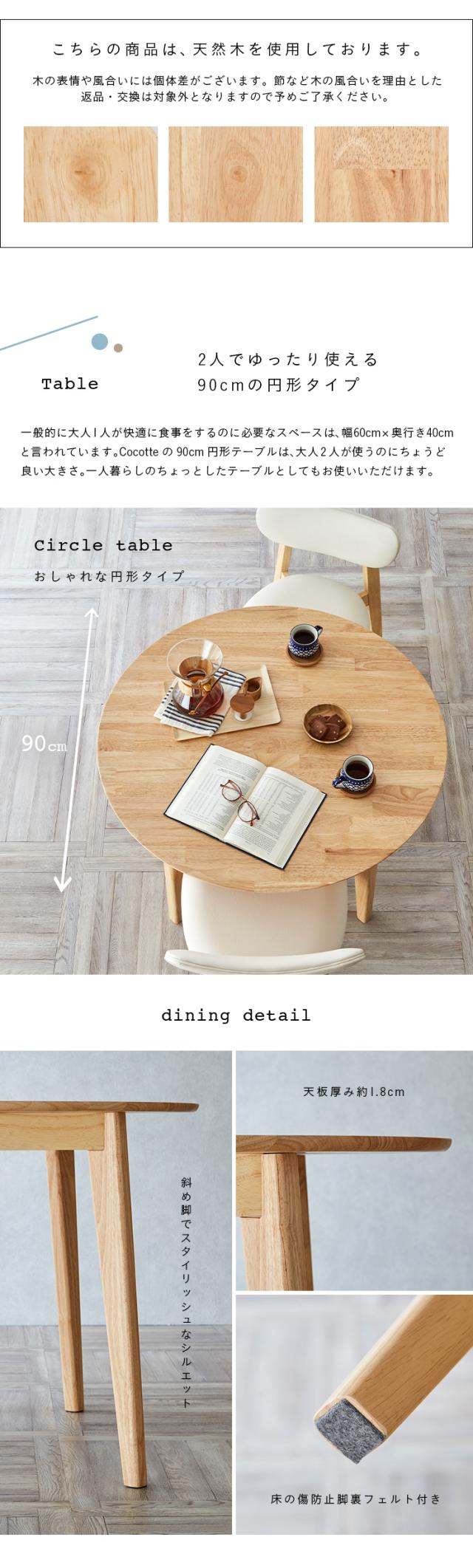 ダイニング3点セット 幅90cm Cocotte3(ココット3) 4色対応 円形ダイニングセット 円形ダイニングテーブル ダイニングテーブルセット ラウンドテーブル 円卓 ダイニングチェア ダイニングチェアー おしゃれ 木製