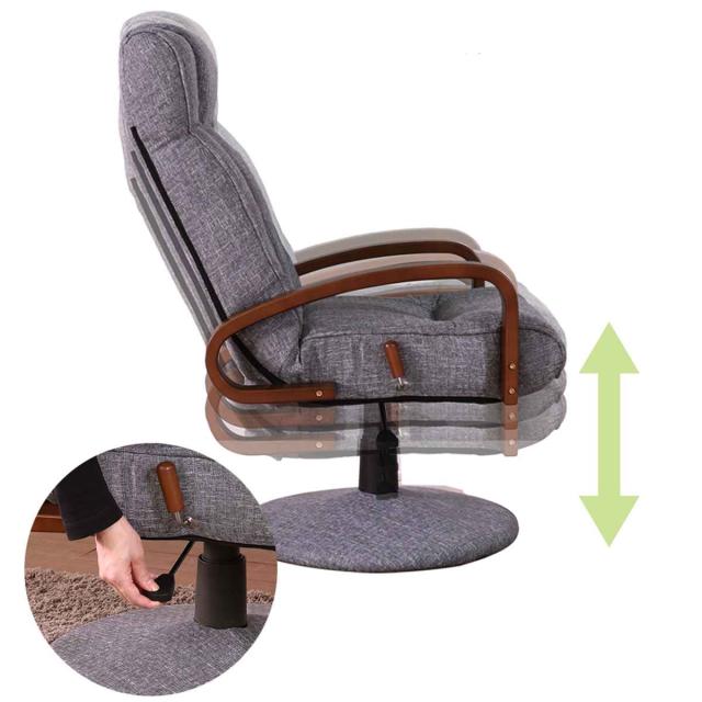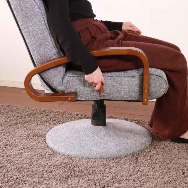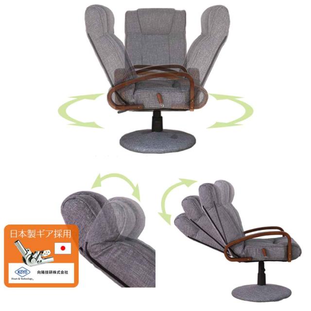 無段階リクライニング、レバー式昇降、14段階ヘッドギアを備えた多機能回転高座椅子です。360度回転するので椅子を動かすことなくデスクやテーブルからの移動がスムーズにできます。