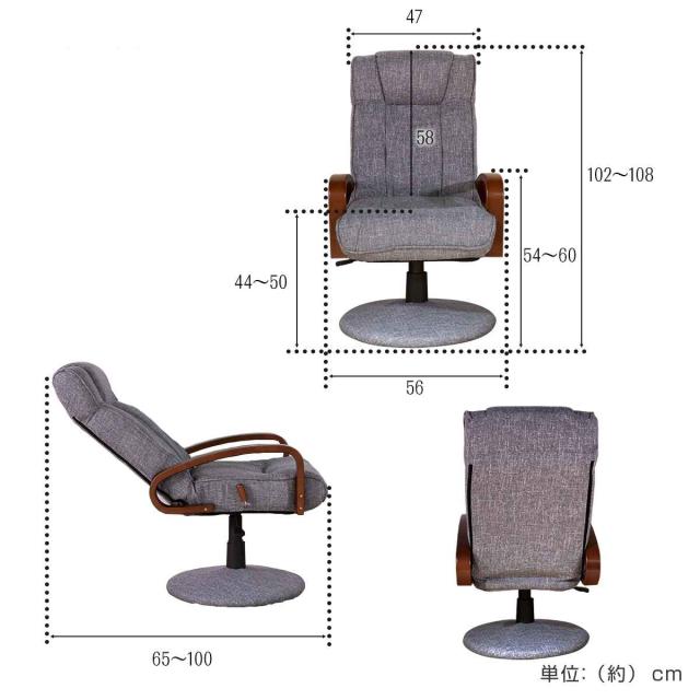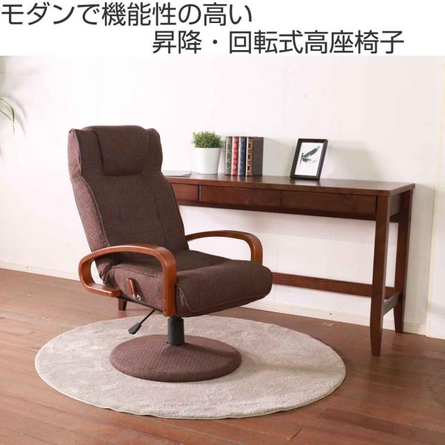 高座椅子 高齢者 回転 リクライニング ヘッドレスト可動 座面高44〜50cm ( 1人掛け ソファ リクライニングチェア 椅子 介護 いす デスク チェア 肘付き ハイバック 立ち上がり 楽 ファブリック )