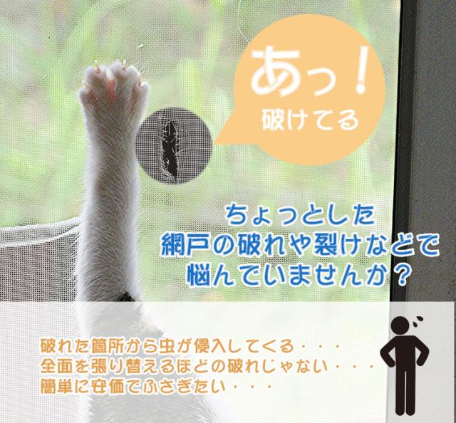 - 網戸の少しの穴が気になり購入しました。簡単にはれてよかつた。夏に小さい虫が入るのでたつかります。