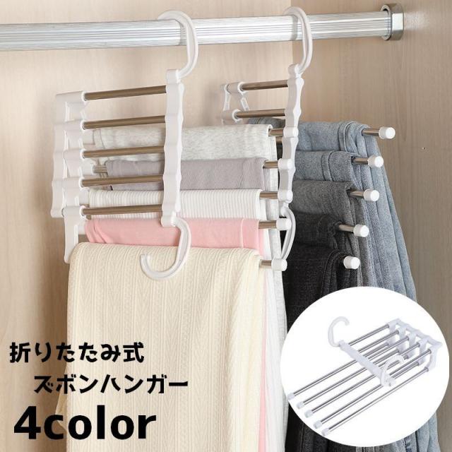 ズボンハンガー 折りたたみ ハンガー 5連 省スペース 洗濯 物干し クローゼット収納 収納 整理 整頓 スラックス パンツ ハ