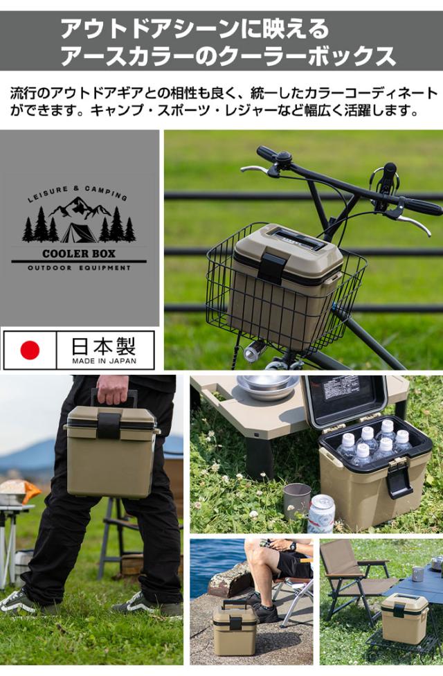 アウトドアシーンに映えるアースカラーのクーラーボックス。