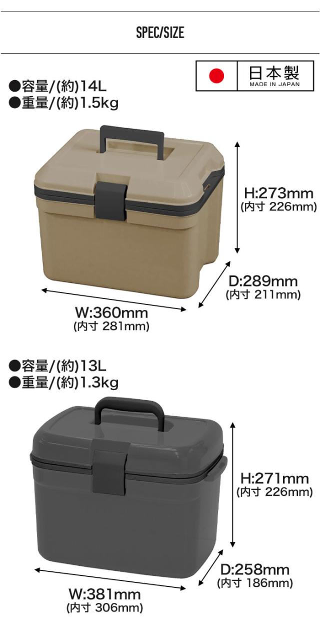 | [本体・フタ・ベルト]ポリプロピレン [フタパッキン]発泡ポリエチレン [断熱材]発泡スチロール |