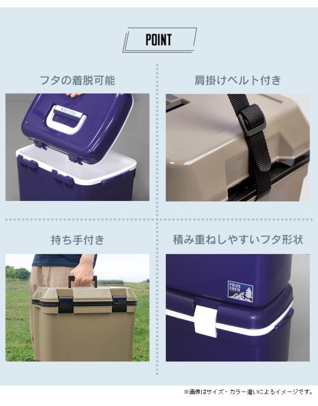| アウトドアシーンに映えるアースカラーのクーラーボックス。 キャンプやスポーツ、レジャーなど幅広く活躍します。 ペットボトル500mlが15本、1.5Lなら7本、2Lなら8本を立てたまま収納できます。 ※収納本数は容量目安です。保冷剤を入れた場合は異なります。 フタを取り外せるのでお手入れも簡単。 持ち運びに便利な肩掛けベルト付き。 |