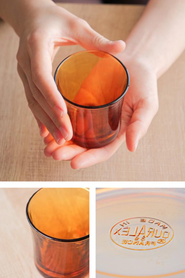 レトロな雰囲気がお洒落なアンバーカラーのグラスです。耐熱性があり、アイスにもホットにも使えます。小さめサイズで飲み物はもちろん、前菜やデザートも美しく盛り付けられ、晩酌用にはロックグラスとしても使えます。