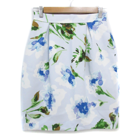 【中古】ラ トータリテ タイトスカート ひざ丈 花柄 マルチカラー 38 水色 白 ライトブルー /FF44 レディース