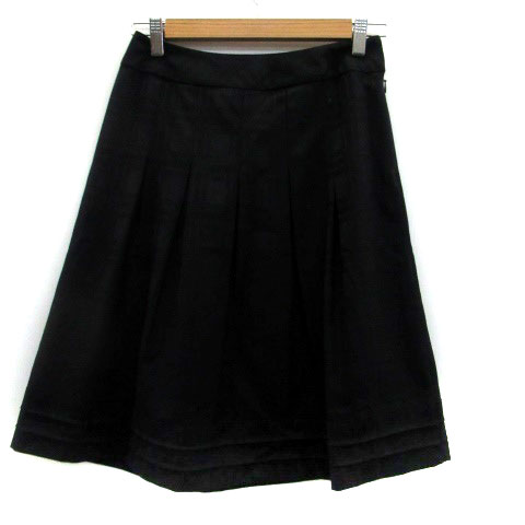 【中古】コムサモデルズ COMME CA MODELS フレアスカート ミモレ丈 リボン チェック柄 M 黒 ブラック レディース