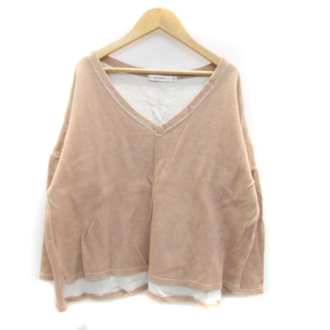【中古】マウジー moussy カットソー Vネック 長袖 無地 オーバーサイズ F ベージュ /HO44 レディース